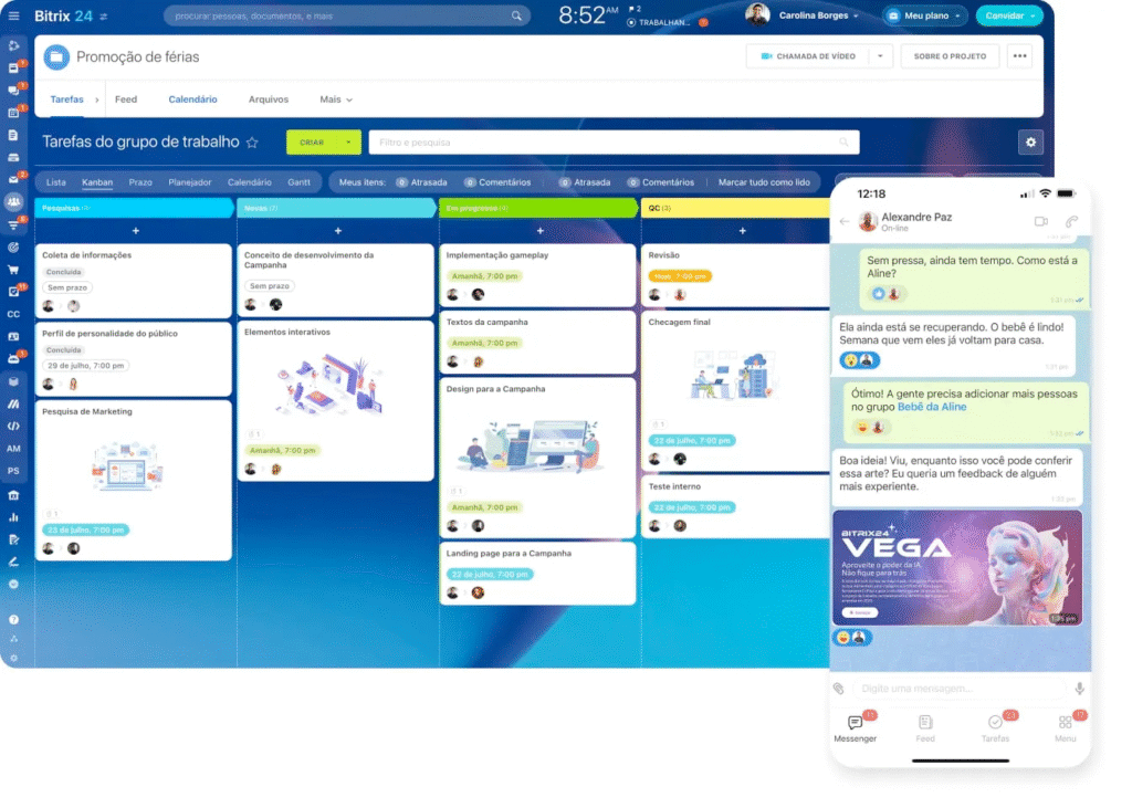 O Bitrix24 é uma plataforma completa que integra CRM, comunicação, automação e gestão de tarefas em um só lugar.