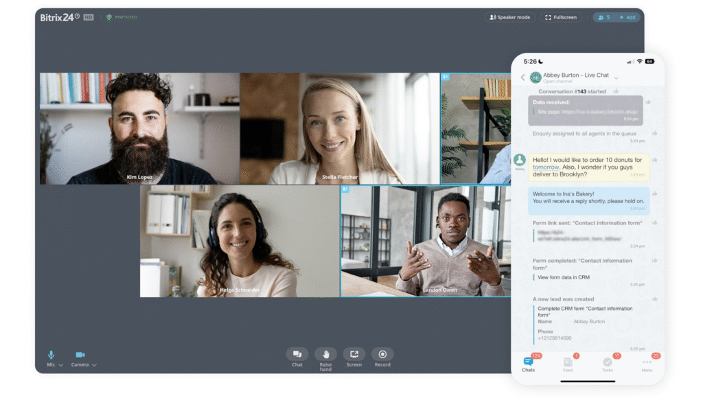 O escritório virtual do Bitrix24 reúne ferramentas de chat, videoconferência, calendário, drive na nuvem e fluxos de aprovação em uma única plataforma. Dessa forma, sua equipe pode se comunicar melhor, acessar informações rapidamente e manter todos os processos sob controle, mesmo em modelos de trabalho remoto ou híbrido.