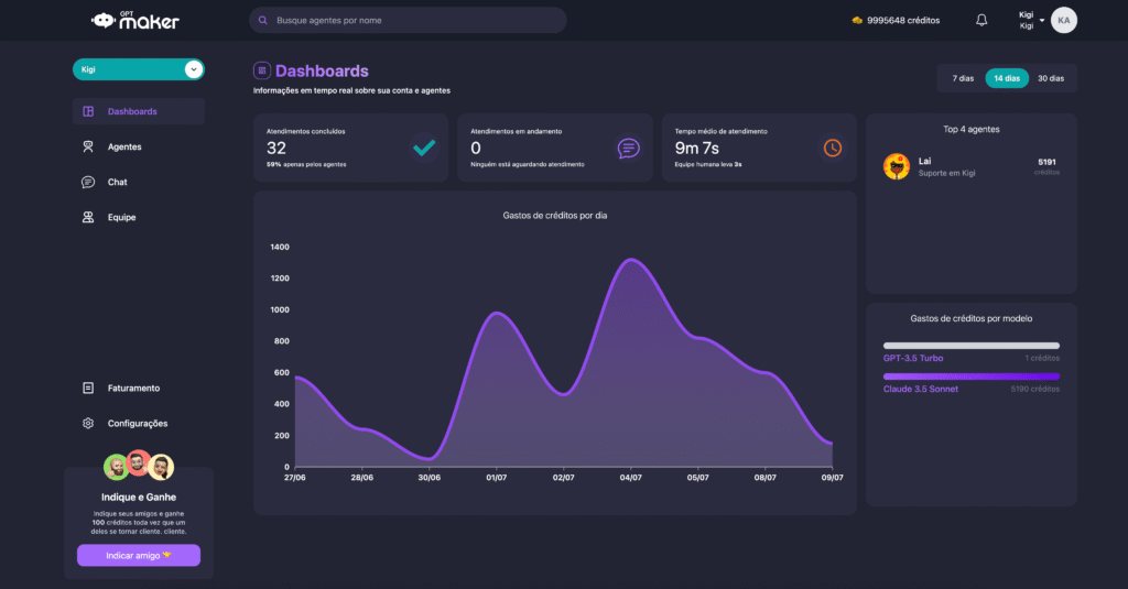 Crie sua conta do GPTMaker clicando aqui e ganhe créditos gratuitos para testar a plataforma.